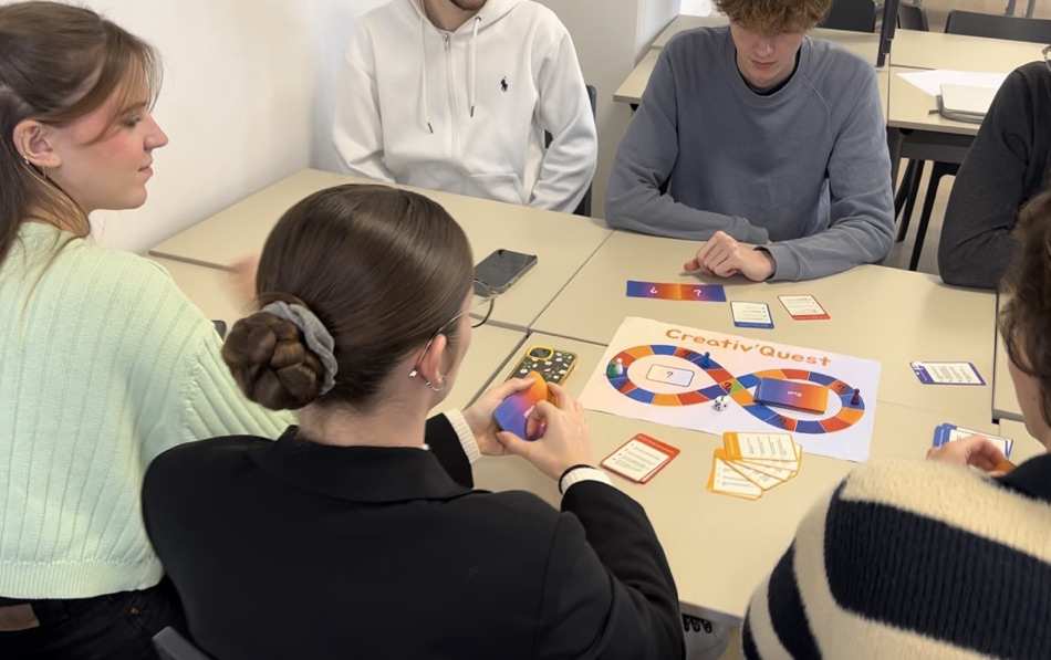 Une fois les équipes réunies, un brainstorming a pu débuter, suivi par étapes, par le design du jeu, l’établissement des règles, la création du prototype, une phase de test et ses ajustements, pour aboutir finalement à une présentation devant les autres étudiants.