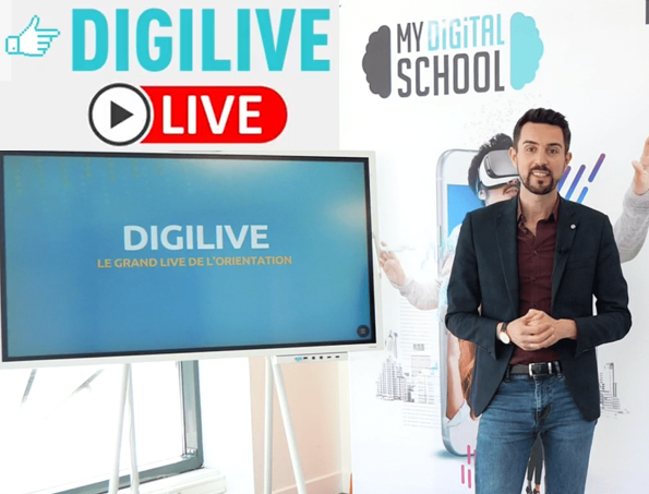 Venez nous rencontrer lors de notre DIGILIVE MYDIGITALSCHOOL : notre nouveau format de journée portes ouvertes virtuelle pour vous aider à faire le bon choix de formation pour votre rentrée 2022 !
