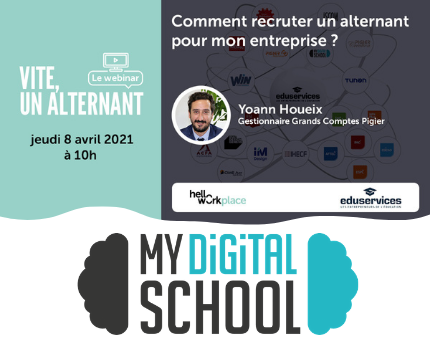 MyDigitalSchool, enseigne de l'Alliance Eduservices en partenariat avec HelloWork vous convie à notre webinar "Vite un alternant" pour vous aider à recruter votre alternant.