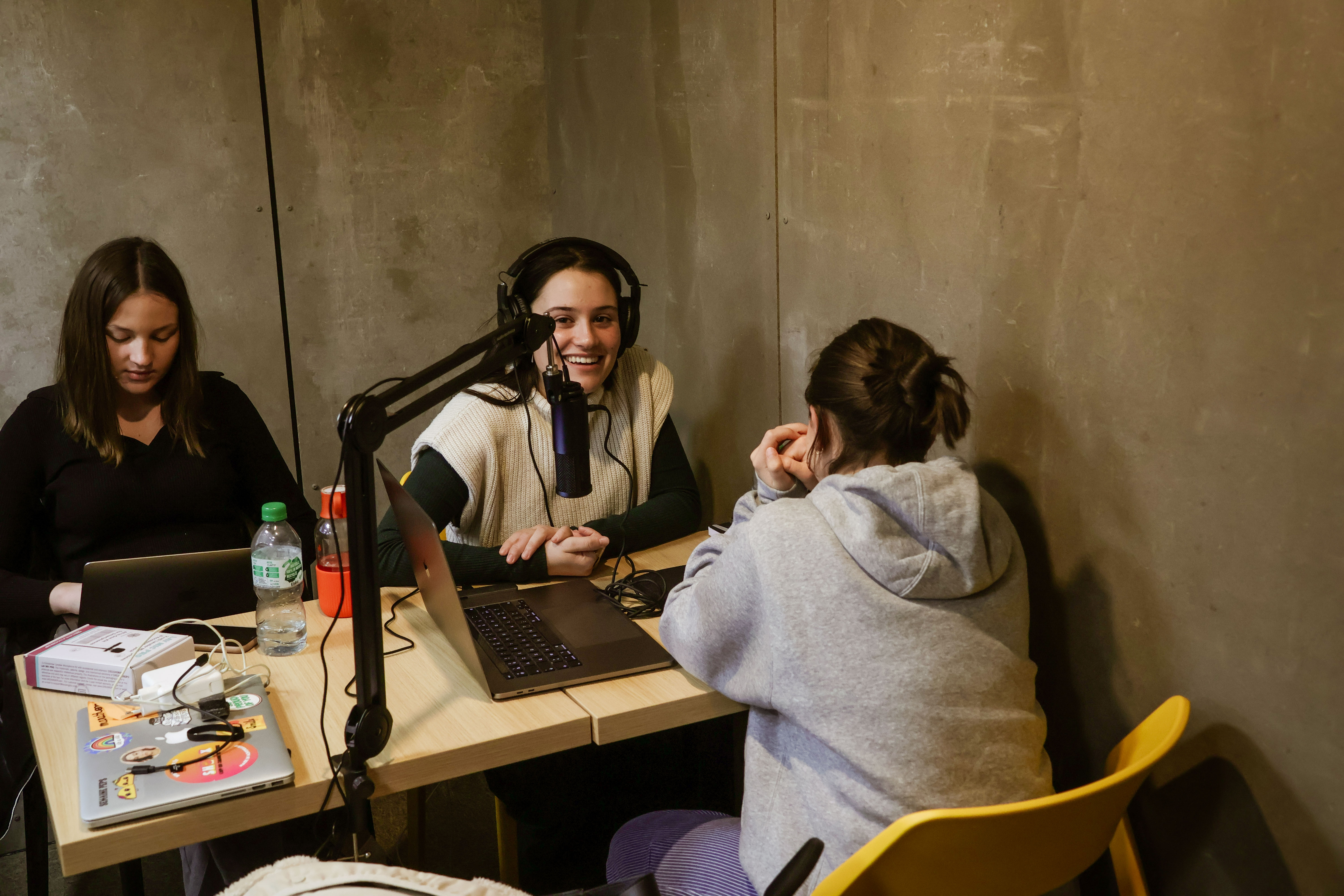 Pour clôturer cette expérience, notre intervenant nous a permis d’enregistrer un épisode de podcast, dans le studio d’une radio locale. Nous avons eu l'opportunité de terminer ce module en beauté en enregistrant un podcast dans des conditions réelles !