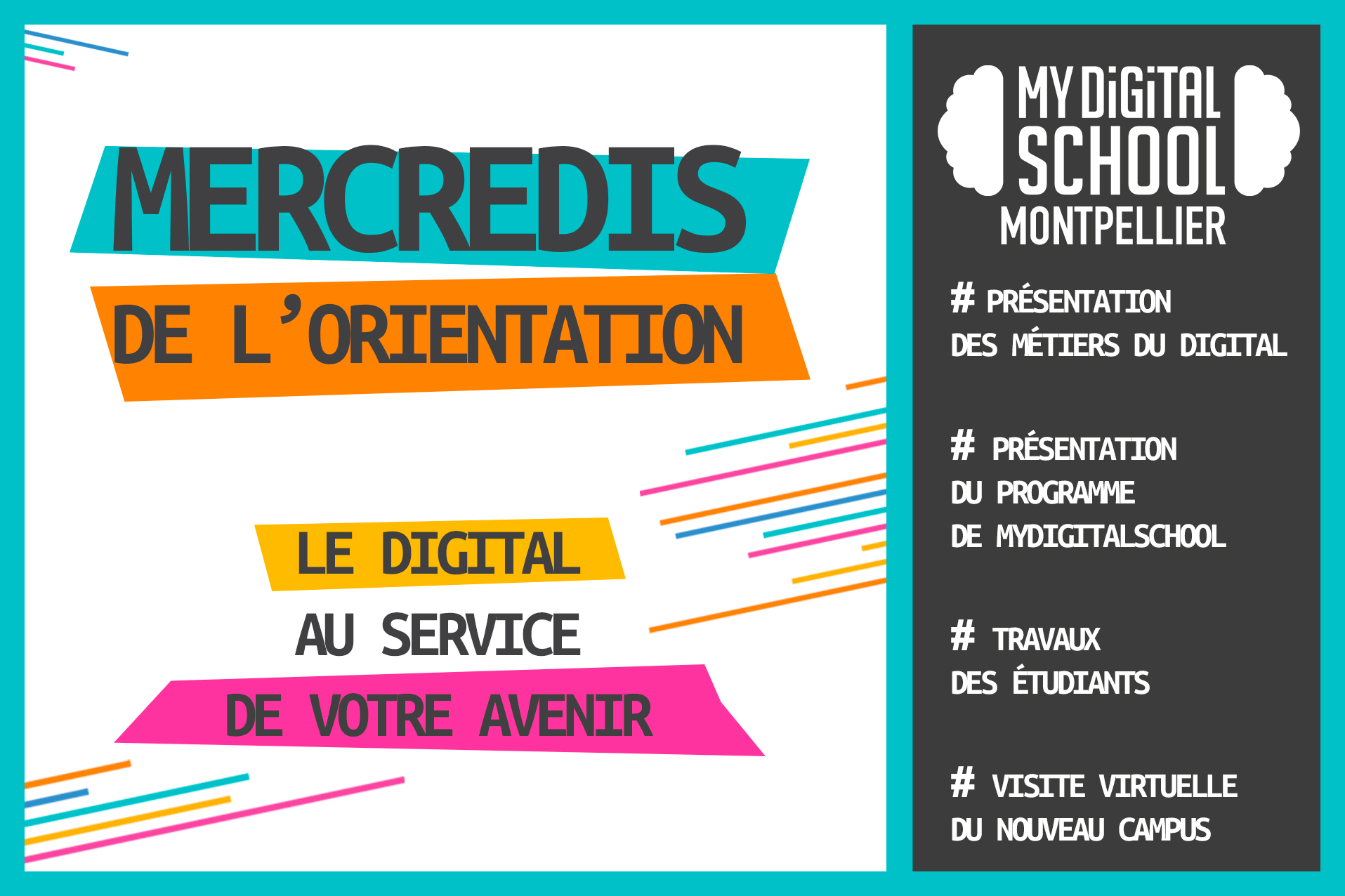 Lycéens, étudiants ou en reconversion professionnelle, venez découvrir les métiers du digital lors des mercredis de l’orientation de l'école du multimédia et du web MyDigitalSchool Montpellier !