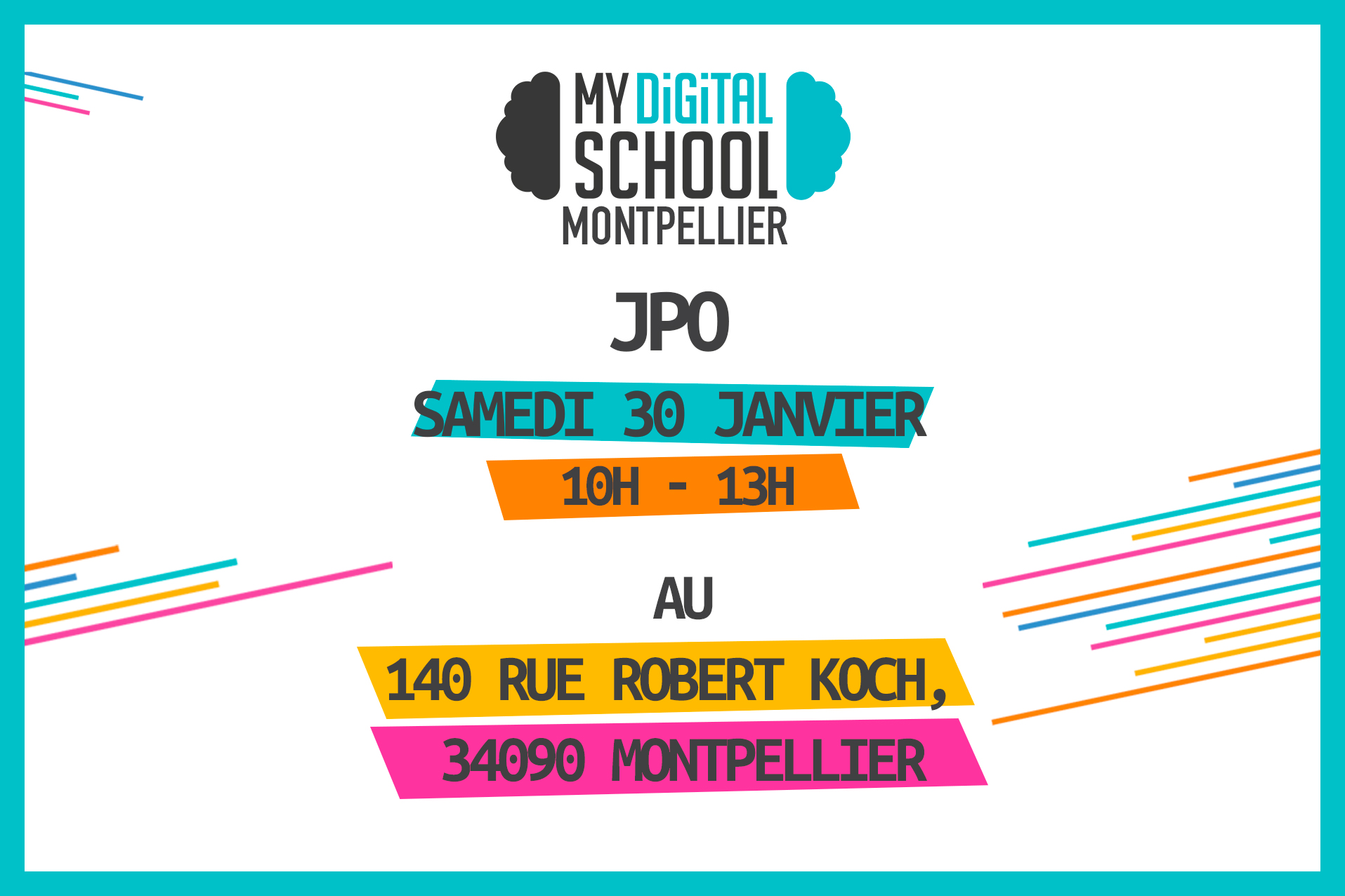 Ce samedi 30 janvier 2021, votre école multimédia et web MyDigitalSchool Montpellier vous présente ses nouveaux locaux le temps d’une journée portes ouvertes.