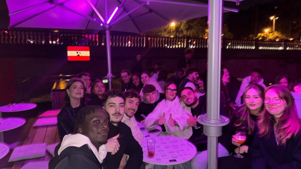La péniche FLUCTUART, lieu d'art urbain flottant sur la Seine, a offert un cadre unique pour cette soirée d'intégration. Ce lieu moderne a permis aux étudiants de se rencontrer dans une atmosphère détendue. Il y'avait même une piste de danse pour ceux qui voulaient montrer leur talent caché !