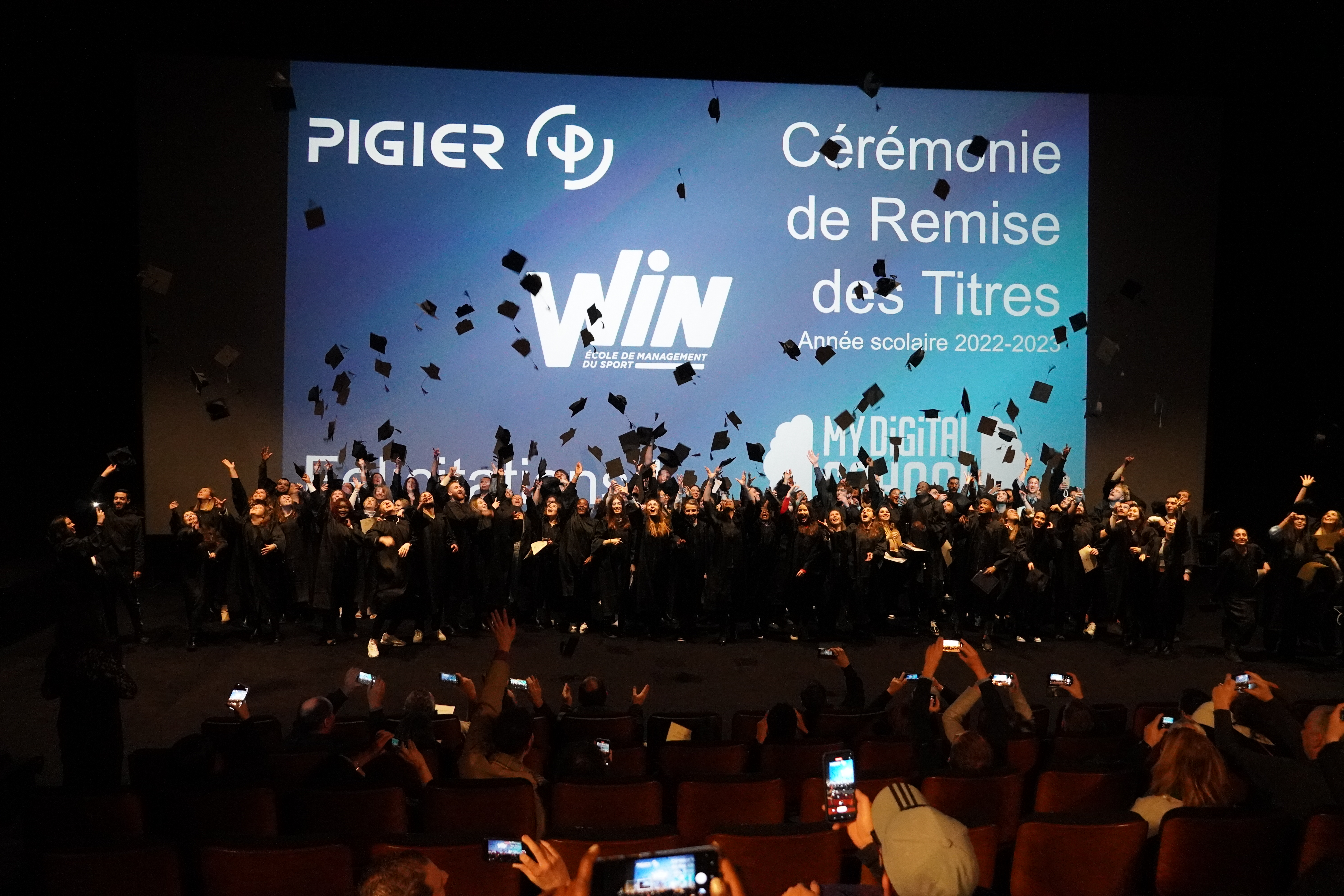 La soirée a commencé aux alentours de 19h30 pour les étudiants de MyDigitalSchool par une cérémonie de remise des titres qui s'est déroulé dans une salle du cinéma.